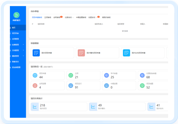 支持對(duì)項目立項申請(qǐng)、學術(s£≈Ω↕hù)審查、倫理(lǐ)審查、中期管理(lǐ)、結題、延期的(de)全流程管"¥理(lǐ)。